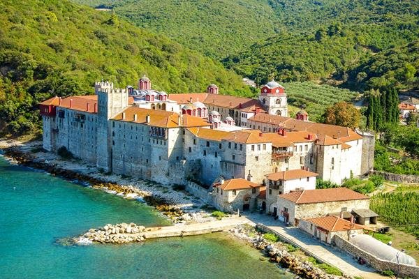 We depart for the charming village of Ouranoupolis in Halkidiki. On our way, we will pass from Volvi and Koroneia Lake and make a stop to admire the fortification of Ancient Stagira, the birthplace of the famous philosopher Aristoteles. Reaching the port of Ouranoupolis we embark on the cruise of Mount Athos where you can admire from a close distance (from the boat), the mysterious and miraculous place which has been for centuries the centre of Orthodoxy and you will find out new information about the history of the Mount Athos and its monasteries. The area has transformed into a place of eminent historical and cultural importance and enjoys a landscape of great natural beauty. After the cruise, free time for lunch or a walk in the village. Heading on the way back we visit Arnea one of the most picturesque villages of North Halkidiki. Return to Thessaloniki.