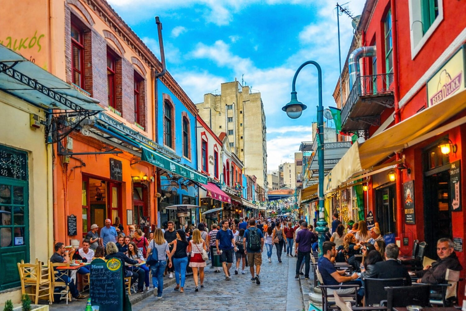 And then there’s Ladadika, one of Thessaloniki’s most atmospheric districts. With its cobbled streets, historic buildings, and buzzing nightlife, it offers an irresistible mix of restaurants, bars, cafés, pubs, and music-filled venues. Once known as the “Egyptian market,” Ladadika has transformed into one of the city’s most popular places to eat, drink, and experience Thessaloniki after dark.